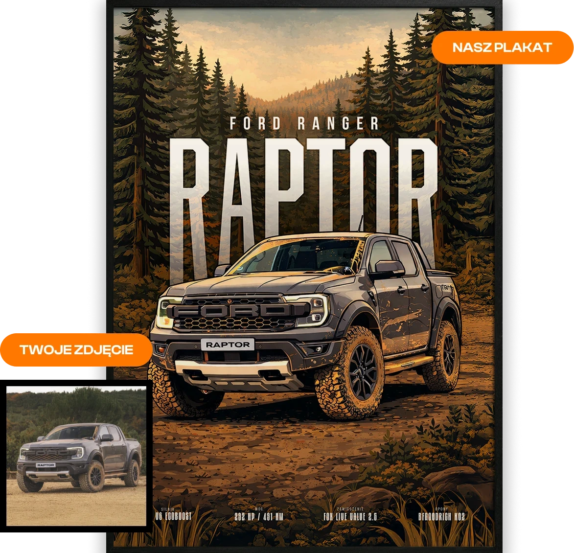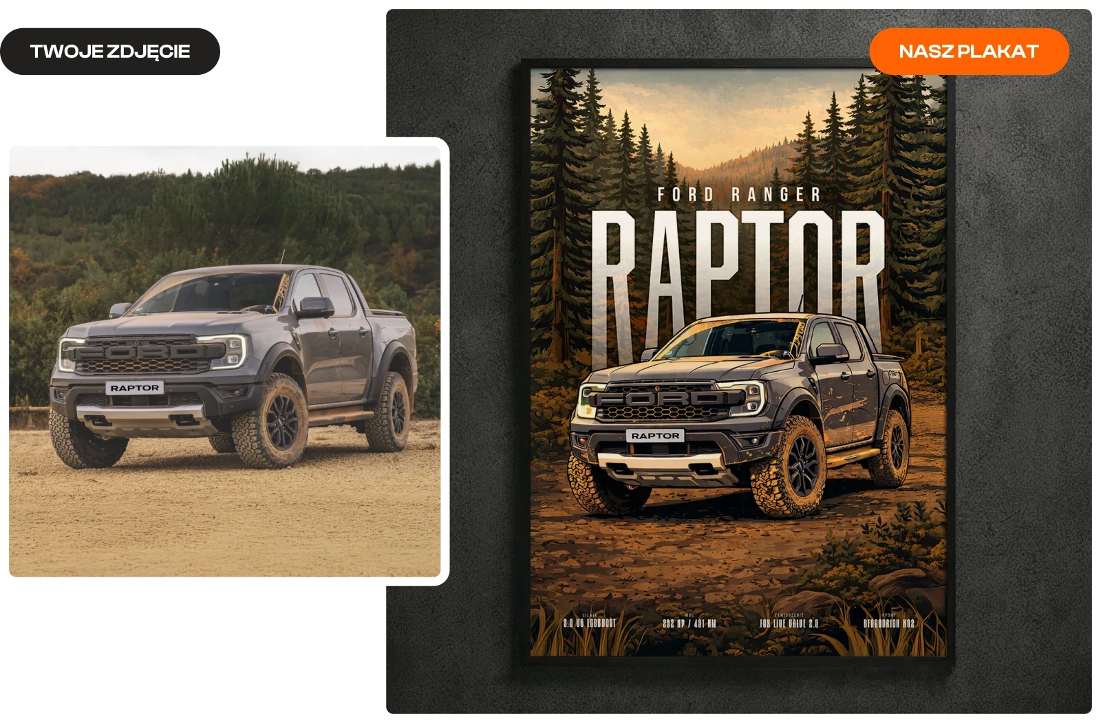 Każdy projekt powstaje indywidualnie, łącząc ludzką kreatywność z możliwościami AI, tworząc wyjątkową pamiątkę lub prezent dla prawdziwych pasjonatów 4x4.